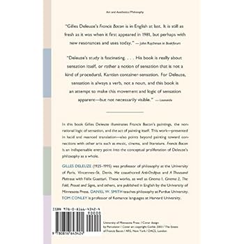 Deleuze's baroque elaborations are pointed in some kind of a direction in this one, to purposes that would be of interest to most painters, elaborating exterior readings of Bacon's work with a vocabulary of materials and sensations that burrow into the process-manipulation end of the deal, the material childhood of making and engaging. Not much cultural critical baggage. Strangely lucid for Deleuze, maybe because he has something substantial to expend his vocabulary on, rather than vague fields of desire and sensation going every which where? His provocative energies are deployed as creatively as any painter's at the coal-face, and not unlike. A kind of analogy to painting itself, in the way that Deleuze has of seeming to make it up as he goes along. Could be subtitled, if it wasn't a dangerous notion to put out there: Why we Paint. I recommend it to students, not to find out about Bacon (who is always good to find out about), or necessarily about how to paint a certain way, but to help them into a kind of head-space about painting, that takes it back to the kind of things you take can notice of when paint events you 'cause' start happening.
