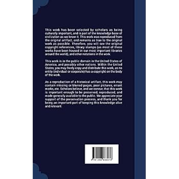 This work has been selected by scholars as being culturally important, and is part of the knowledge base of civilization as we know it. This work was reproduced from the original artifact, and remains as true to the original work as possible. Therefore, you will see the original copyright references, library stamps (as most of these works have been housed in our most important libraries around the world), and other notations in the work.This work is in the public domain in the United States of America, and possibly other nations. Within the United States, you may freely copy and distribute this work, as no entity (individual or corporate) has a copyright on the body of the work.As a reproduction of a historical artifact, this work may contain missing or blurred pages, poor pictures, errant marks, etc. Scholars believe, and we concur, that this work is important enough to be preserved, reproduced, and made generally available to the public. We appreciate your support of the preservation process, and thank you for being an important part of keeping this knowledge alive and relevant.