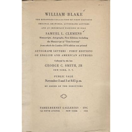 WILLIAM BLAKE, THE RENOWNED COLLECTION OF FIRST EDITIONS ORIGINAL DRAWINGS, AUTOGRAPH LETTERS AND AN IMPORTANT PAINTING IN OILS, SAMUEL L. CLEMENS ... COLLECTED BY THE LATE GEORGE C. SMITH, JR.